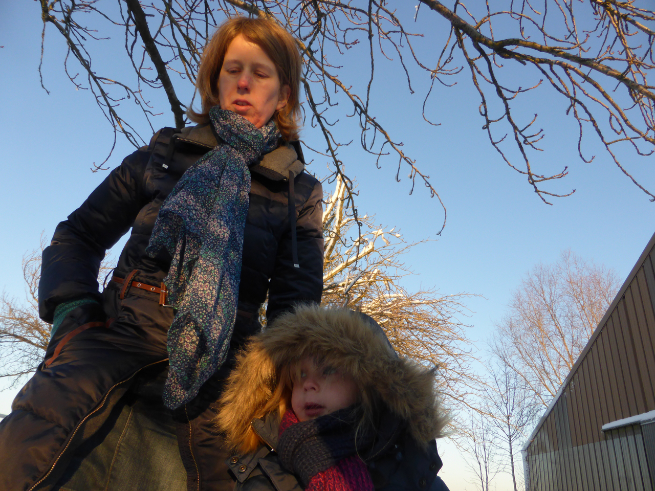 Nous avons effectué une courte ballade (suite au froid mordant) dans le quartier. J’ai bien apprécié la nouvelle luge, même si je n’aime pas encore trop quand elle va vite. J’ai aussi découvert la joie de marcher sur la glace (il y en avait plein au Haras).